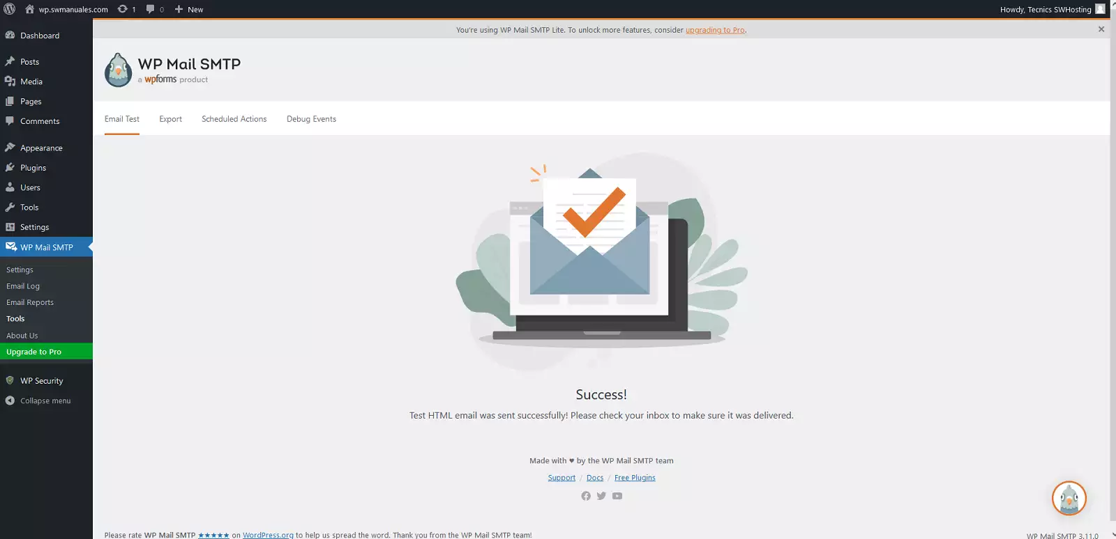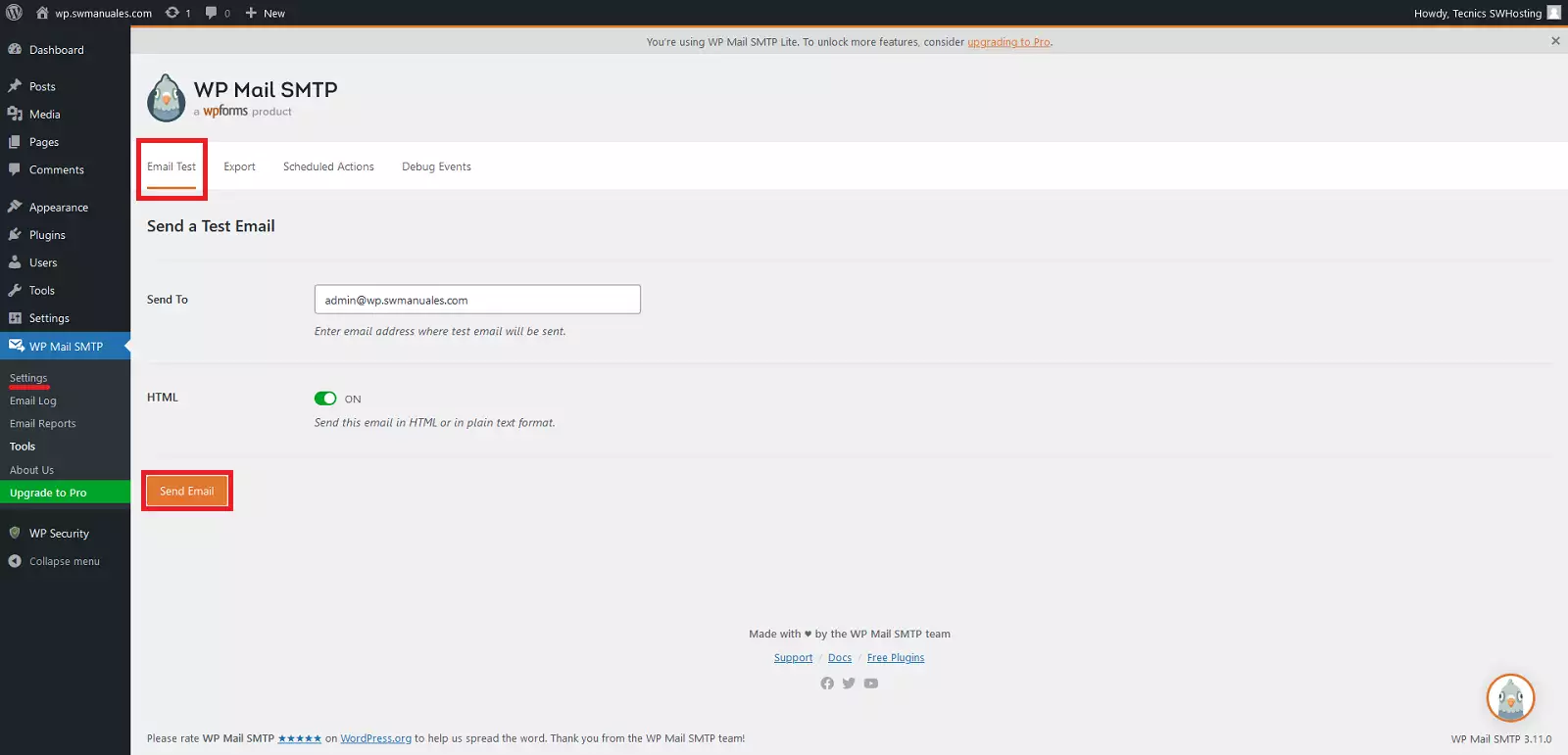 Ens dirigirem novament a la gestió del connector "WP Mail SMTP" -> "Tools" -> "Email test".