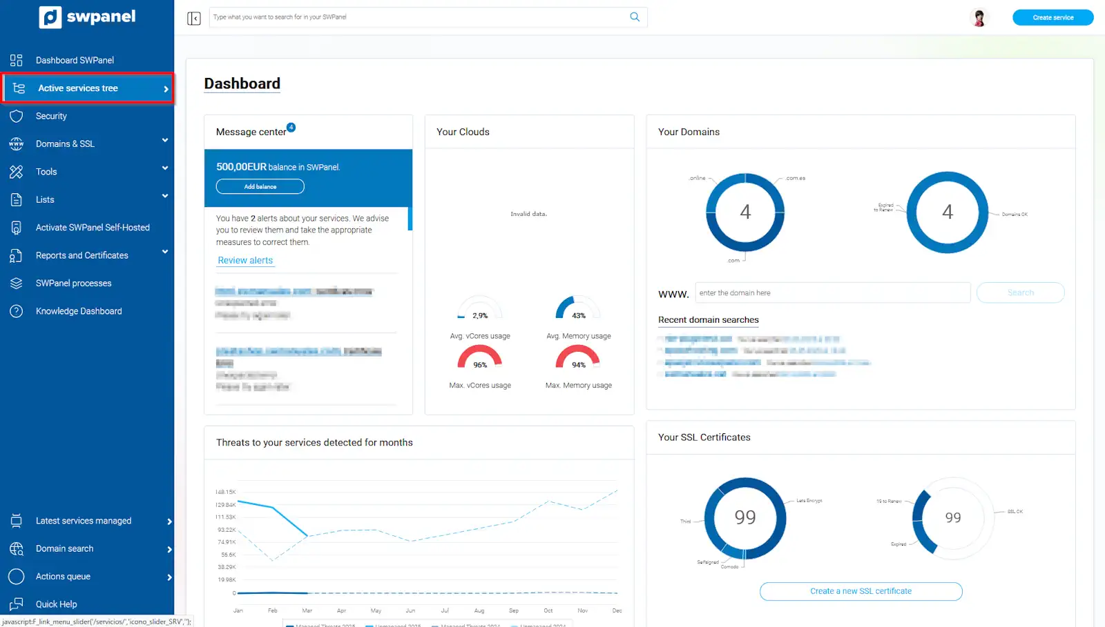 Hauràs d'accedir a l'arbre de serveis del teu compte d' SWPanel: