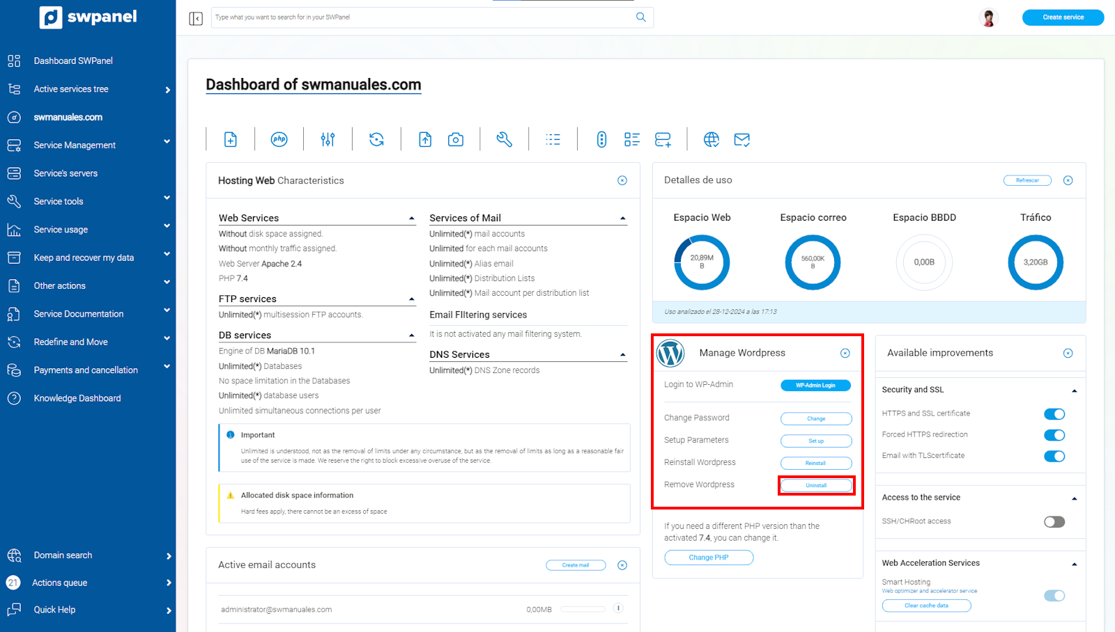 En aquest manual explicarem com desinstal·lar un CMS WordPress. Has de tenir present que s'eliminaran, de forma permanent, tots els fitxer de la teva web i també la base de dades. Pel que és recomanable que facis una còpia de seguretat per si la necessitessis en un futur.