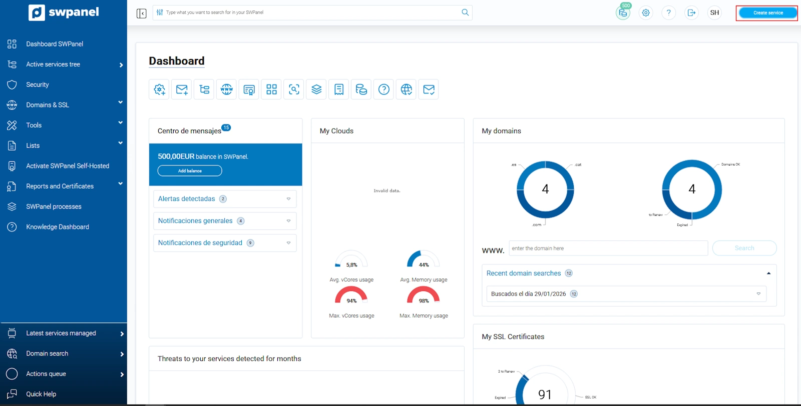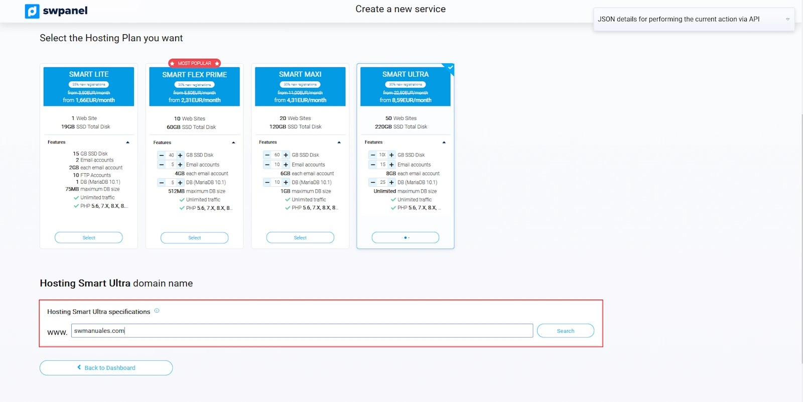 From SWPanel you will be able to set up your hosting service in a matter of minutes.