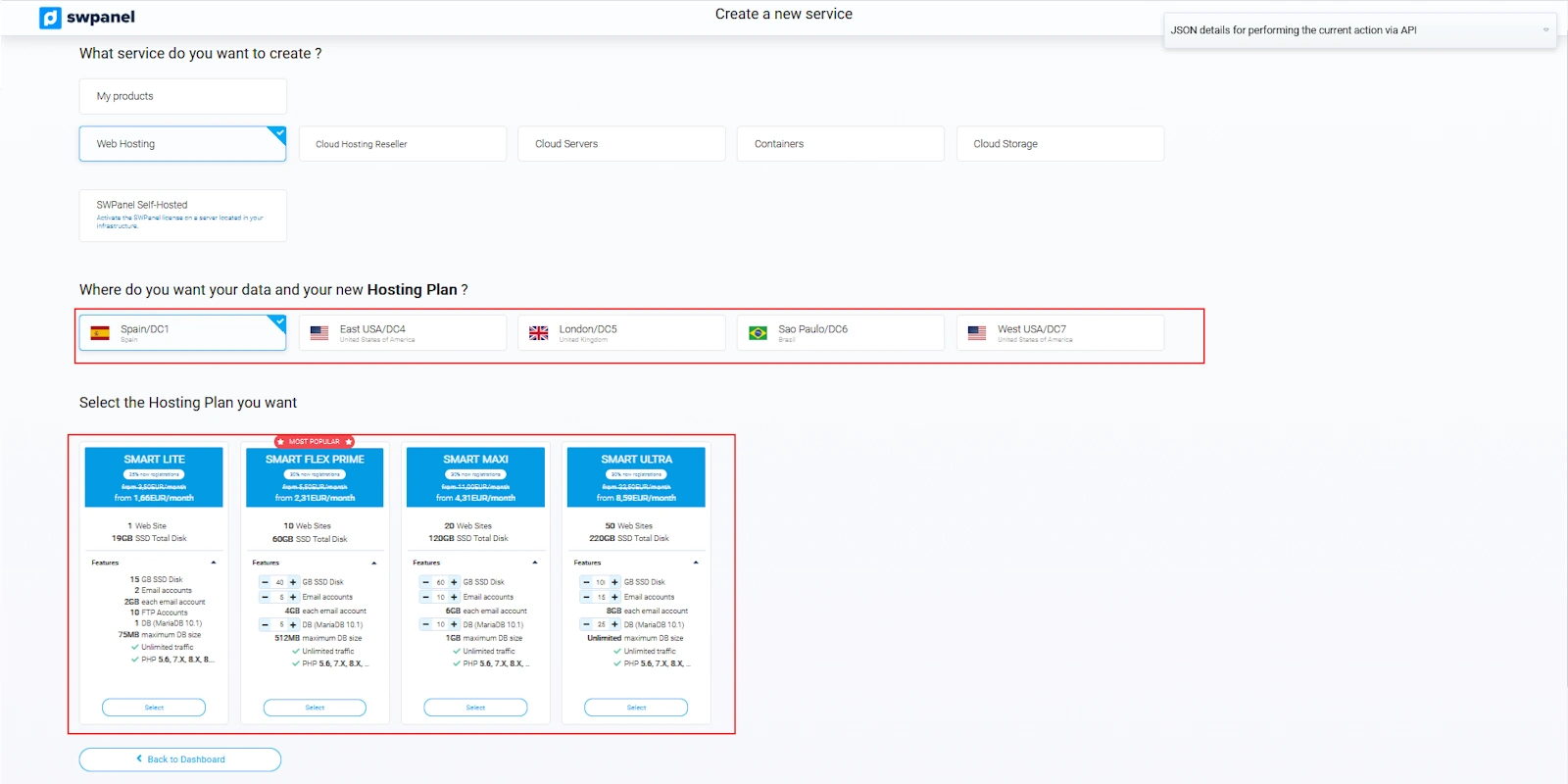 Next, you will be able to select the Data Center where your Hosting will be hosted.