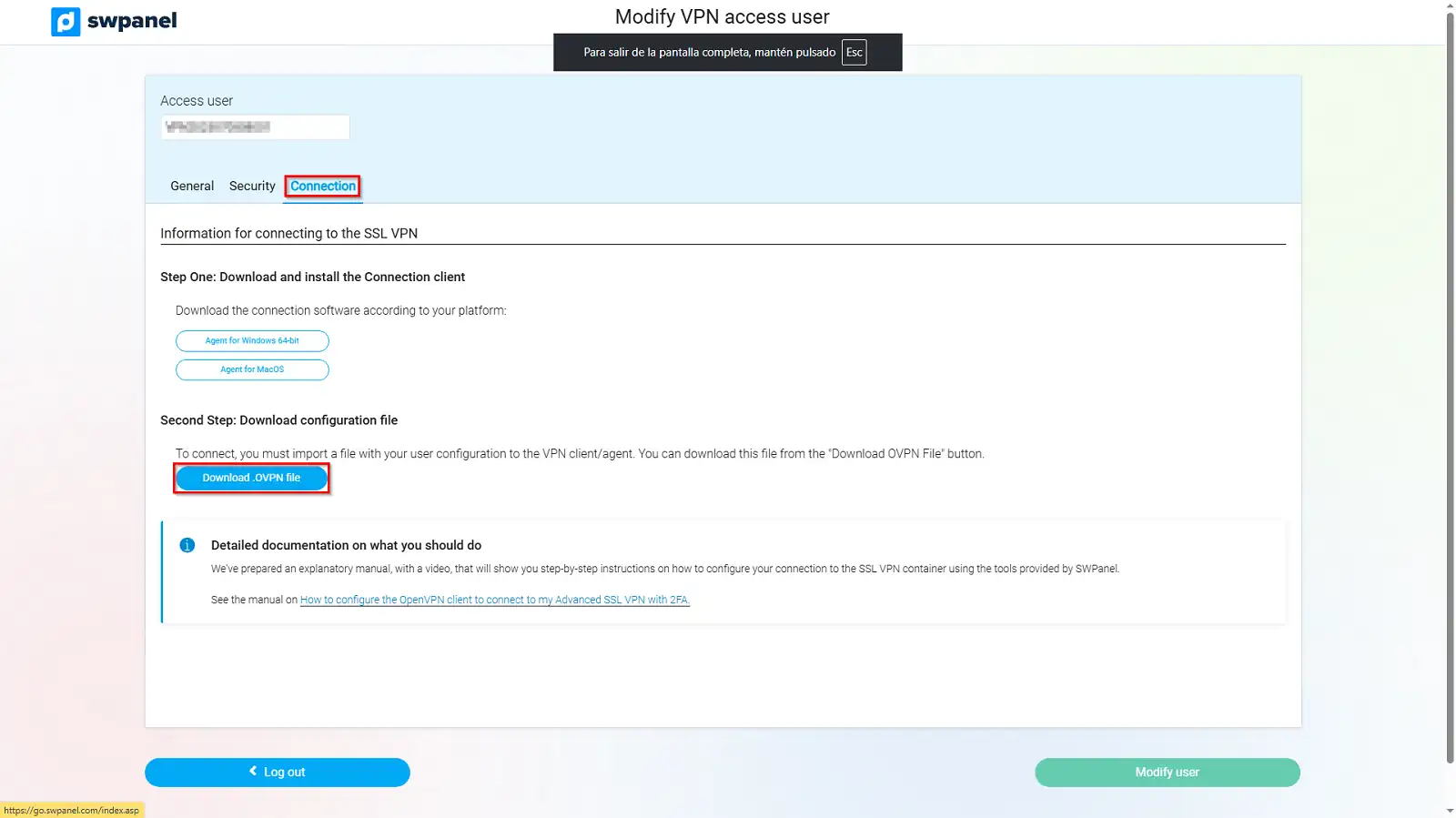 .ovpn configuration fileOnce inside the SWPanel environment, follow these steps: