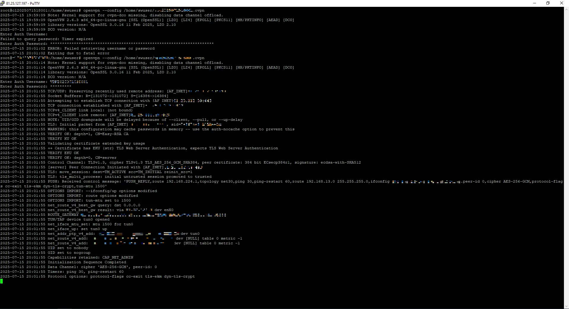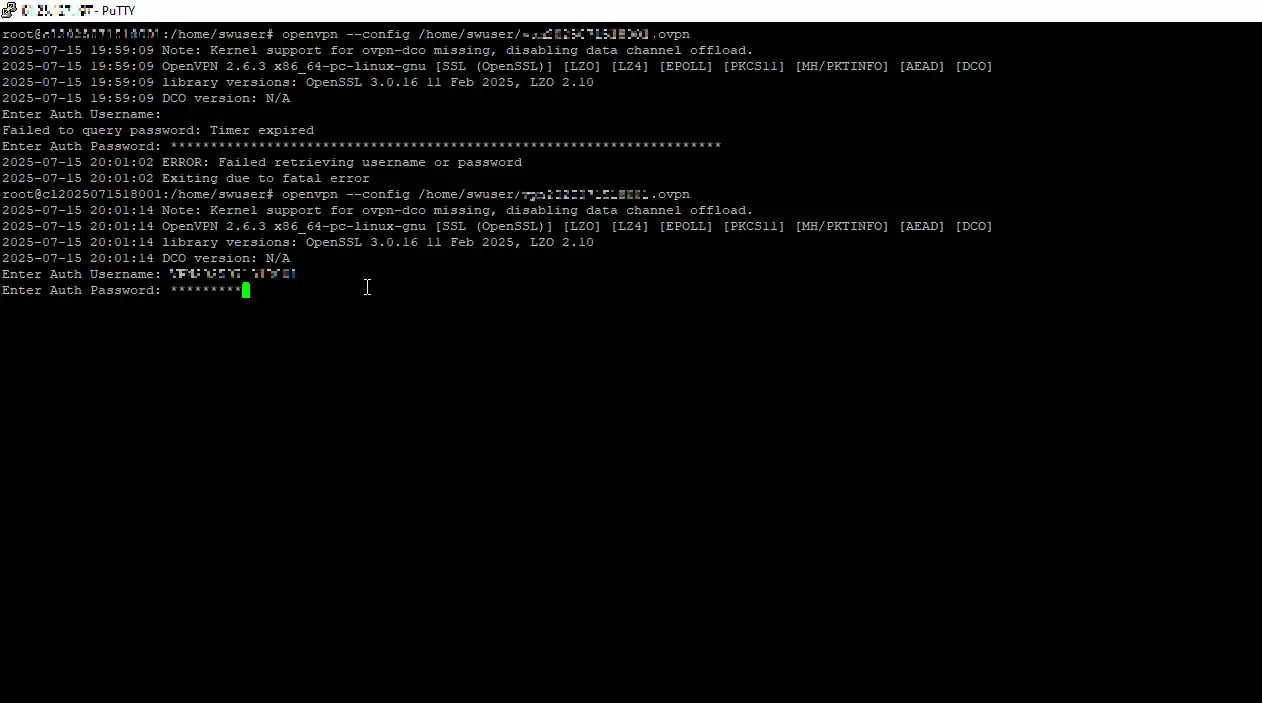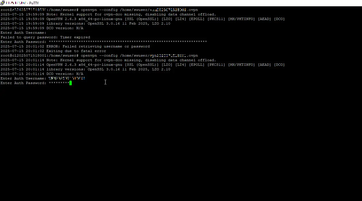 Once the .ovpn file has been transferred, access the Linux server where you want to establish the VPN connection. Then follow these steps:
