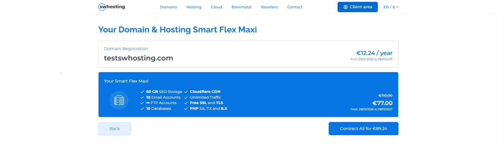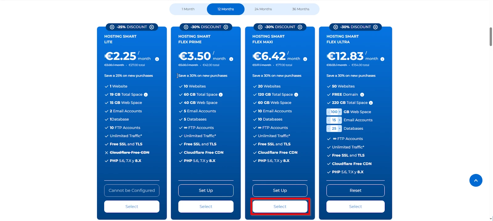Next we will show you how to contract a HOSTING SMART FLEX MAXI at SWHosting.