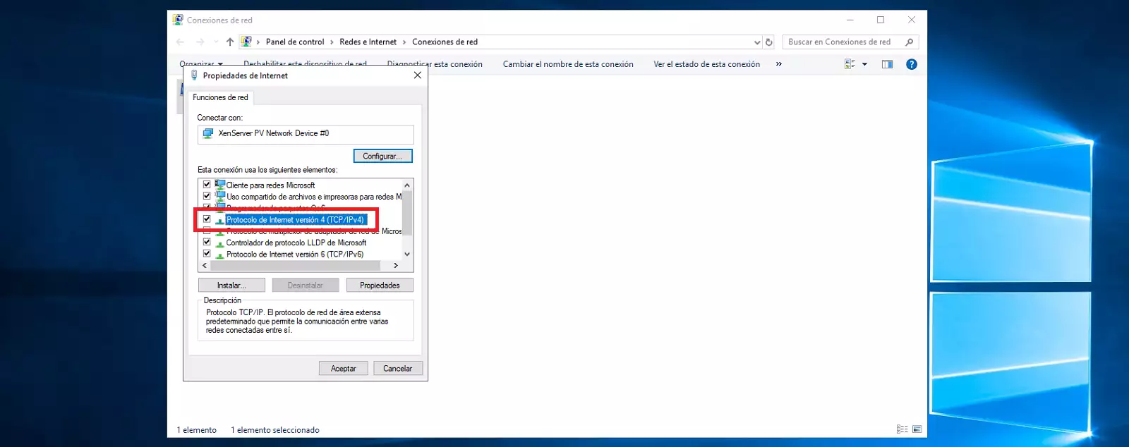 Haz doble clic en el apartado "Protocolo de Internet versión 4 (TCP/IPv4)":