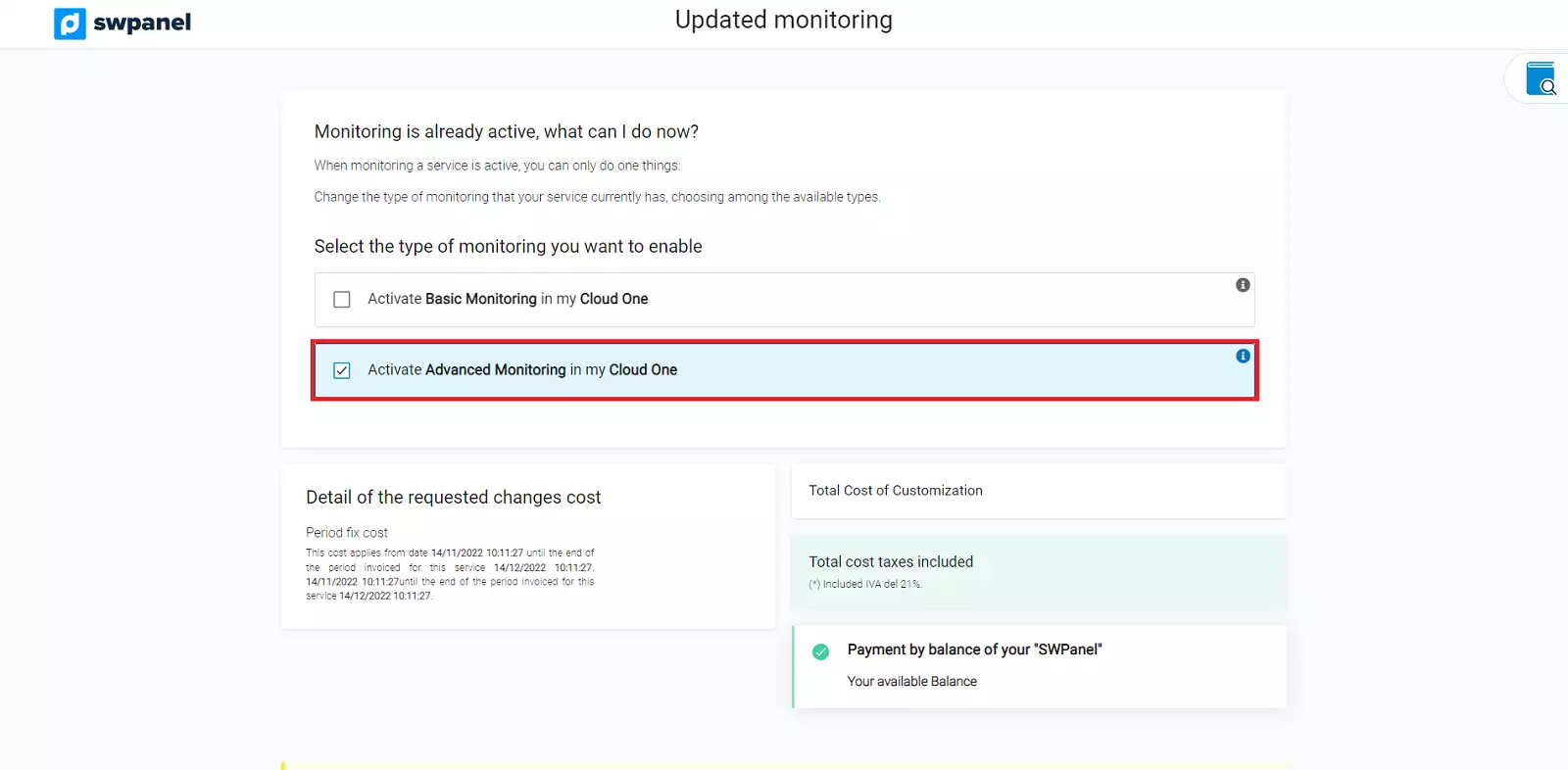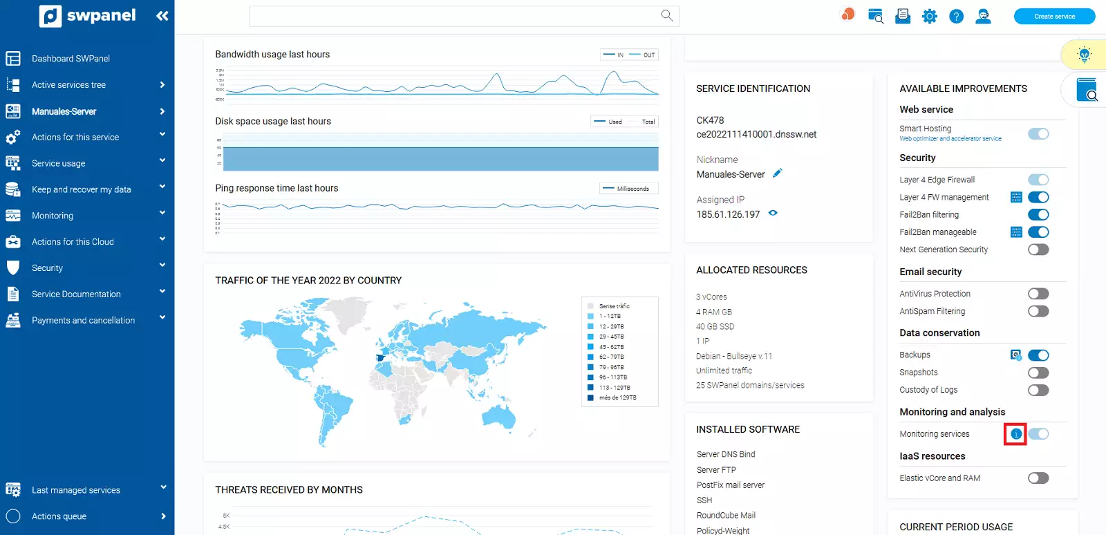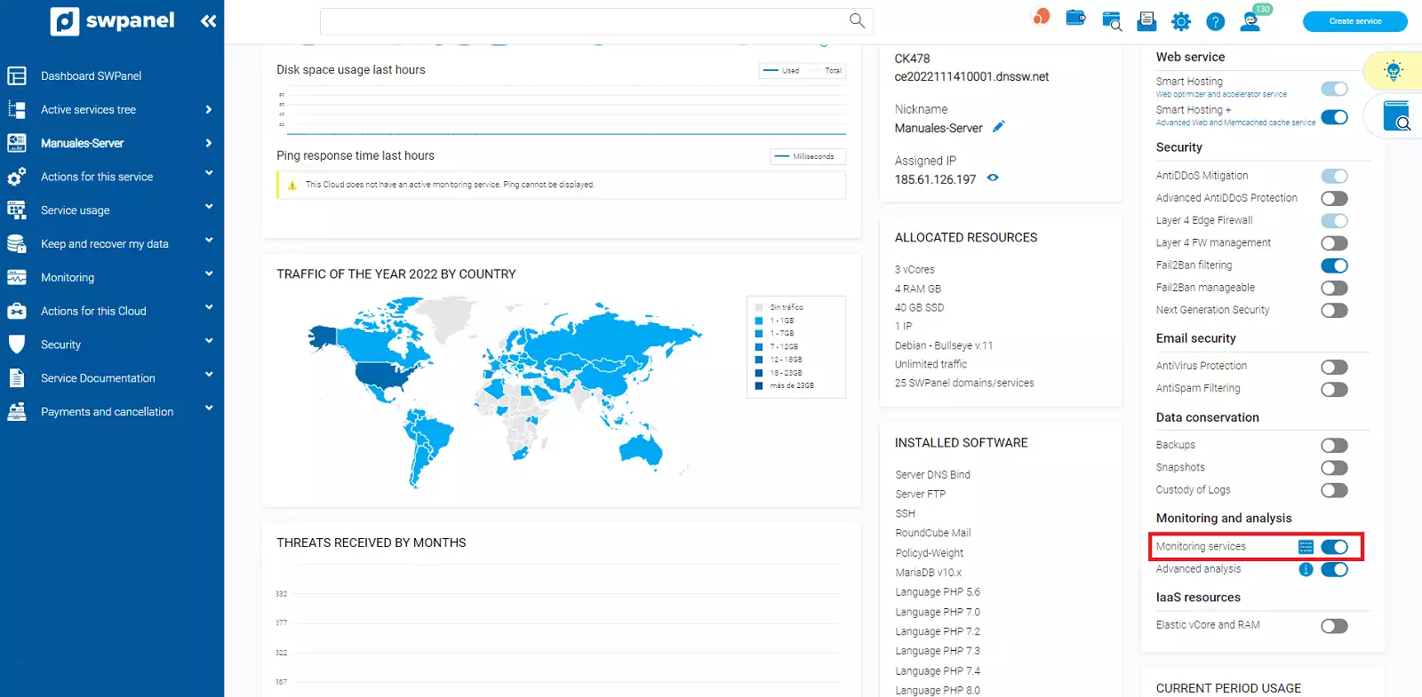 Com Activar el Monitoratge Avançat al meu servidor Cloud amb SWPanel i visualitzar el seu Dashboard.