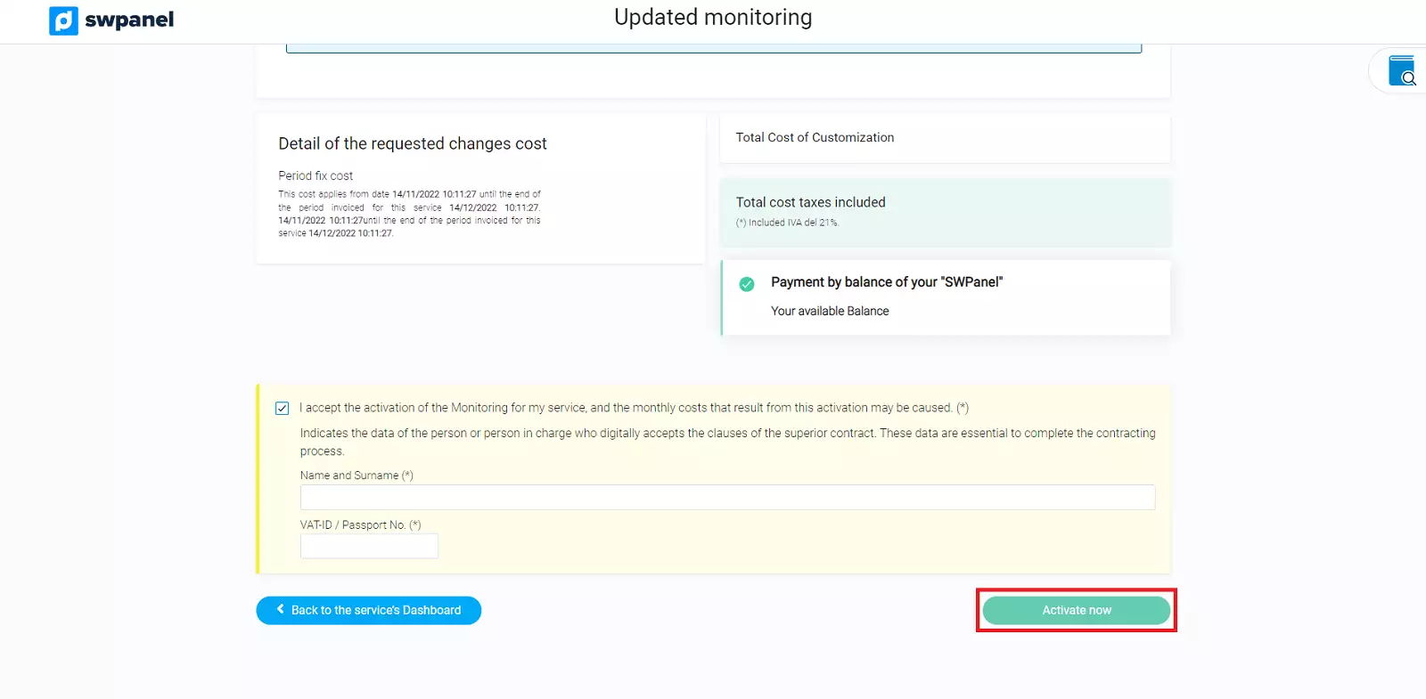 4. Si estàs d'acord amb el preu, prem "Activar ara."