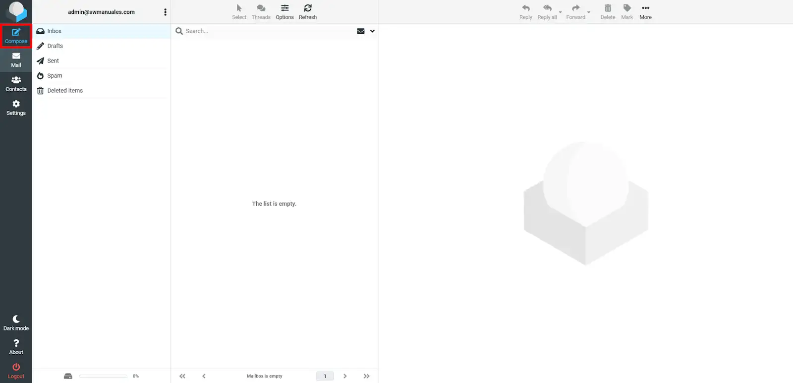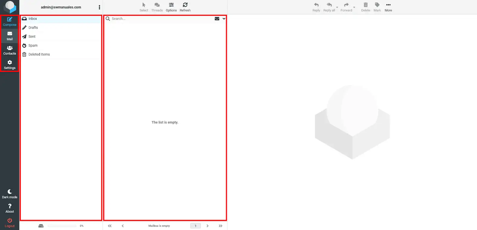 A la banda esquerra, trobaràs la barra de botons. Al centre, veuràs les teves carpetes de correu: Entrada, Esborranys, Enviats, SPAM i Paperera. A la banda dreta, hi apareixen llistats els missatges de correu electrònic que conté la carpeta on et trobes.