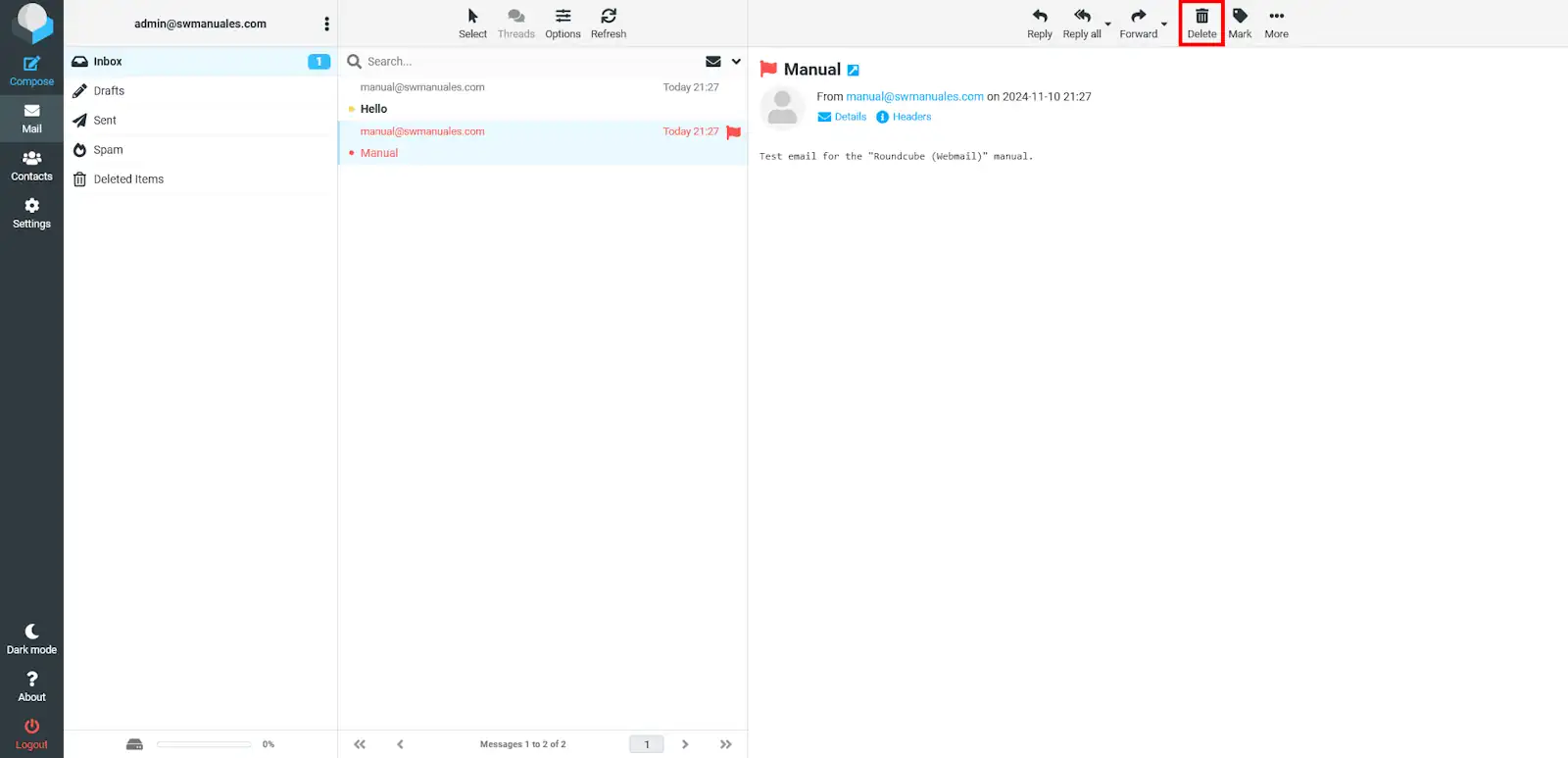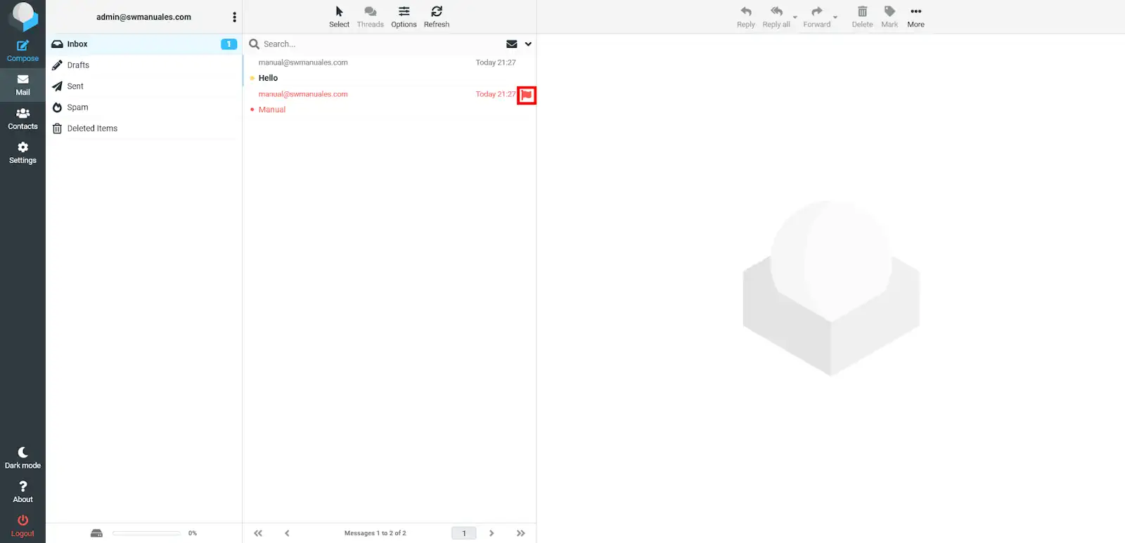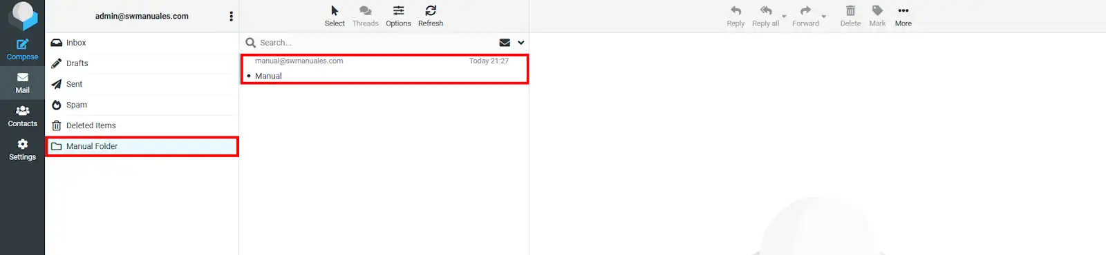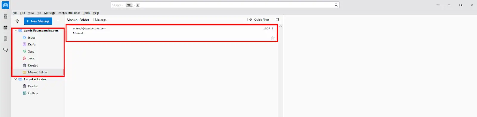 Com es poden veure a les imatges següents, la carpeta que originalment estava al gestor de correu "Roundcube" ara també es pot veure al gestor de correu "Thunderbird".