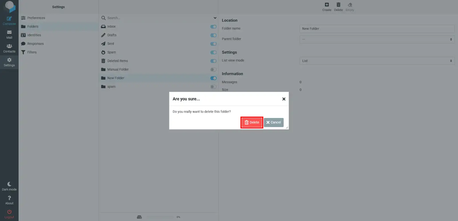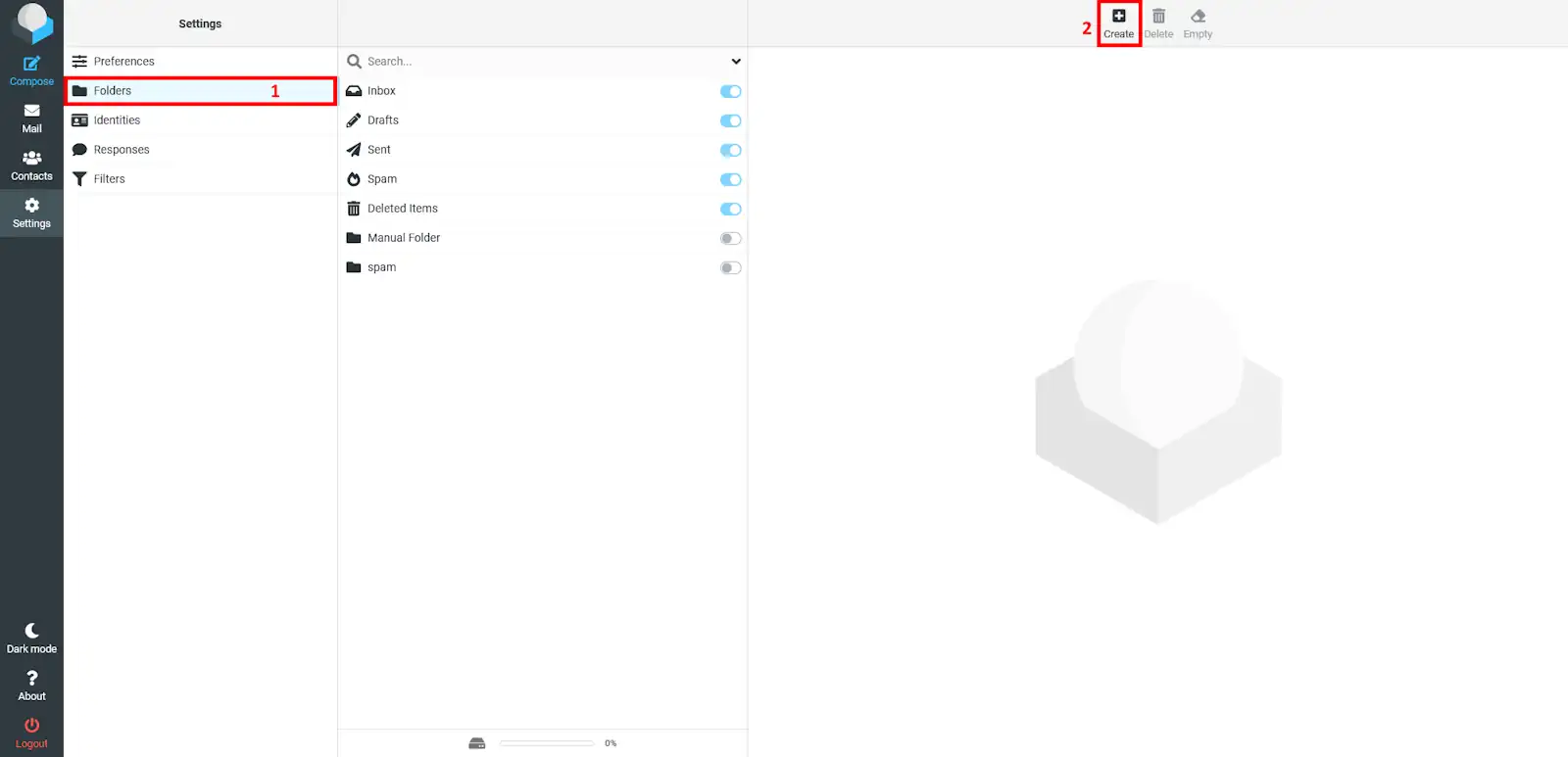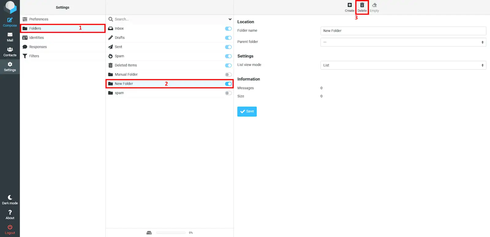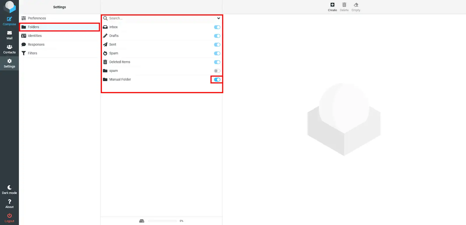 Després, hauràs d'anar a l'apartat de "Carpetes", allà podràs veure totes les carpetes que tens. Per eliminar-ne una simplement hauràs de seleccionar la carpeta que vols eliminar i sobre el botó de la dreta de la pàgina, el qual té el símbol d'una paperera.