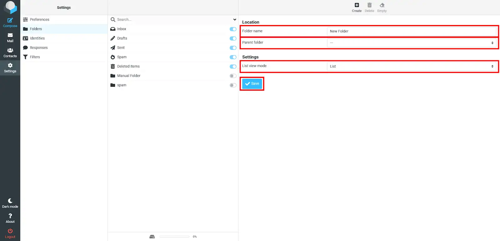 Després, hauràs d'anar a l'apartat de "Carpetes", allà podràs veure totes les carpetes que tens. Per crear-ne una, simplement ha botó de sotla dreta de la pàgina, el qual té el símbol "+".