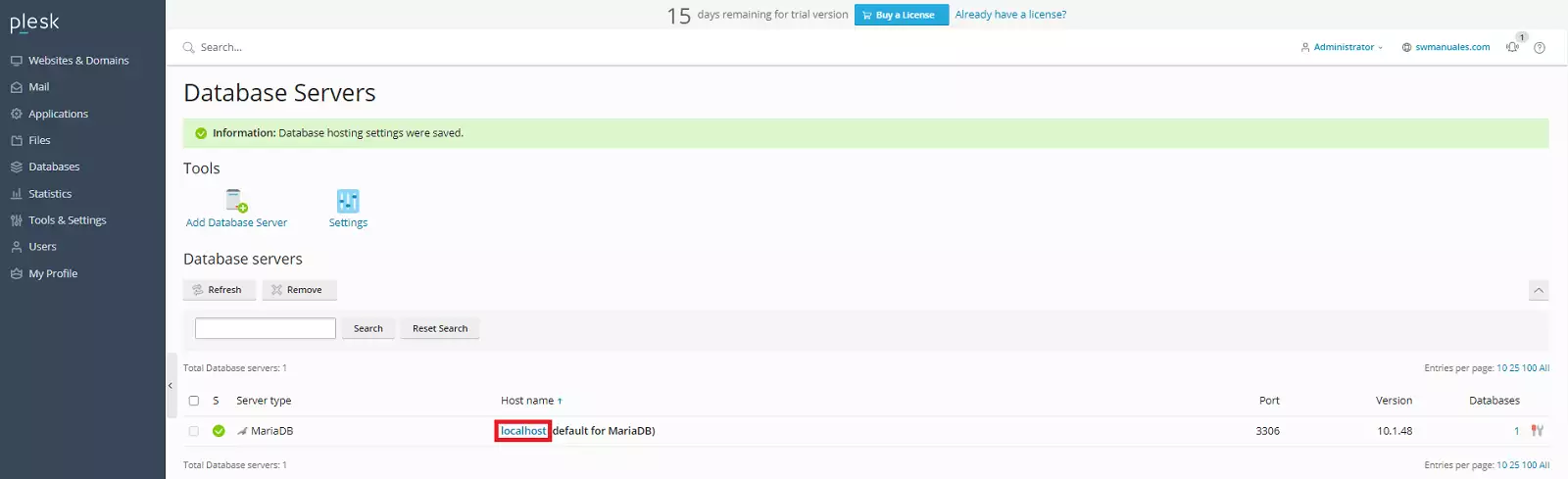 Para finalizar, vuelve a la página de Servidores de bases de datos (puedes acceder siguiendo los pasos 6 y 7).