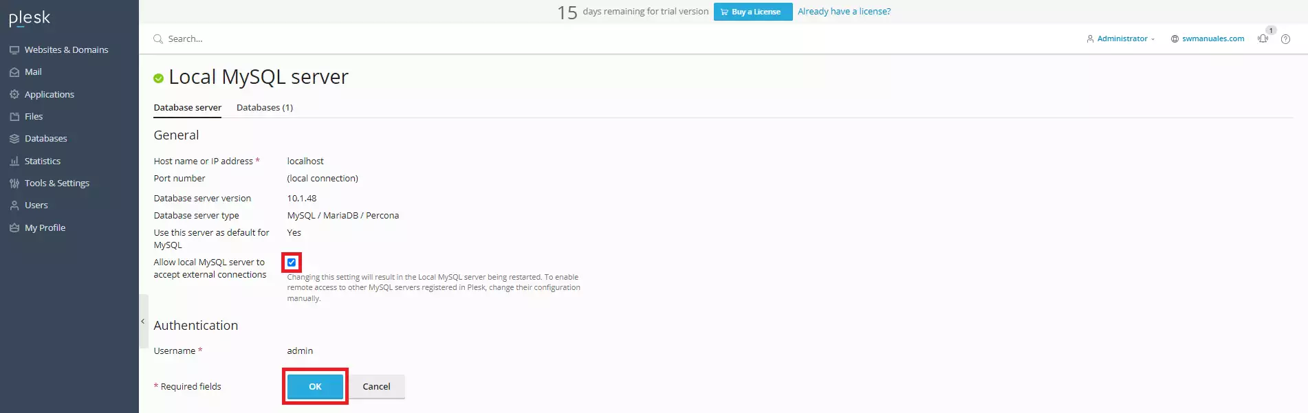 How to open port 3306 in Plesk