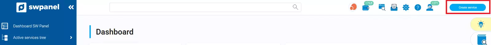En la parte superior derecha de tu SWPanel debes hacer un clic en el botón azul "Crear un Servicio"