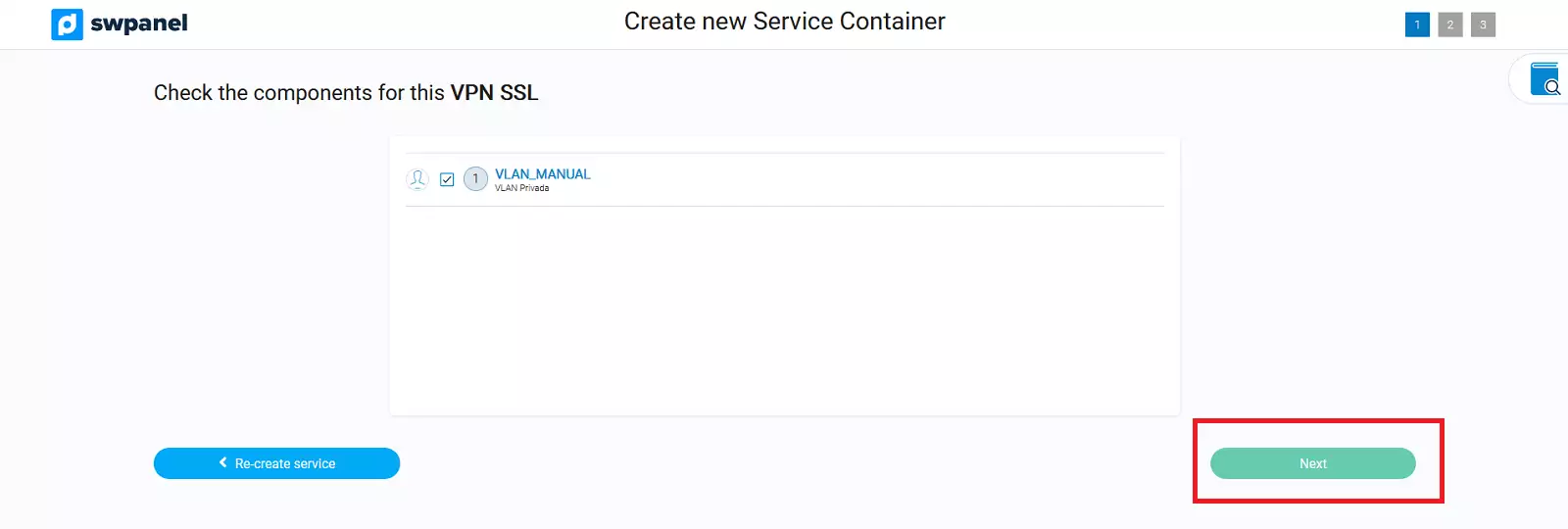 1. Crear el contenedor de Networking y añadir la VLAN Privada a tu VPN SSL.