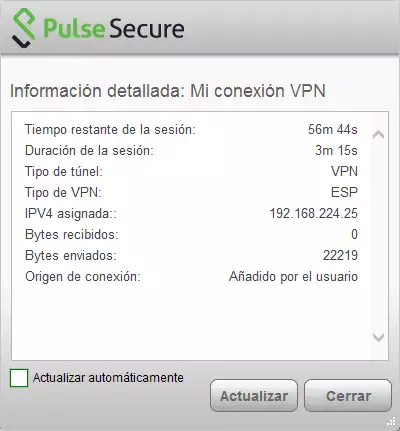 Aparece la nueva conexión en verde, lo cual indica que estamos conectados a la VPN SSL.