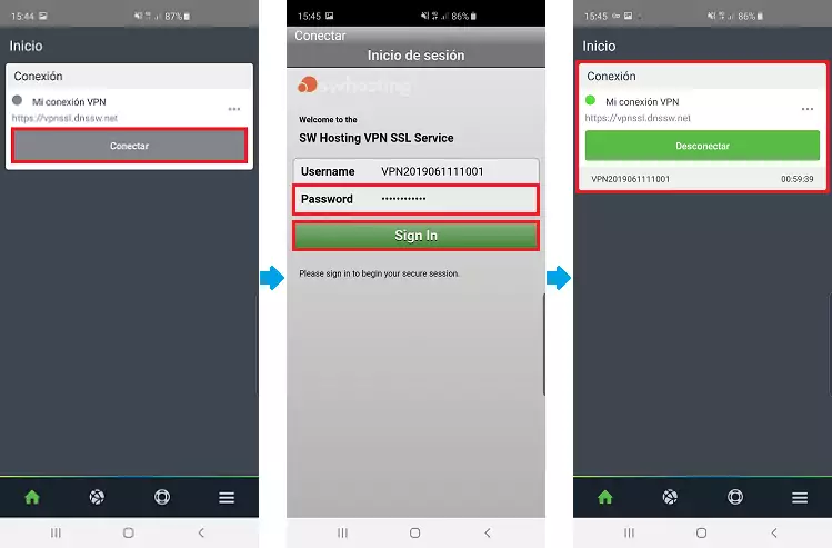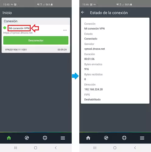 Una vez instalado, ya puedes configurar la conexión VPN SSL: