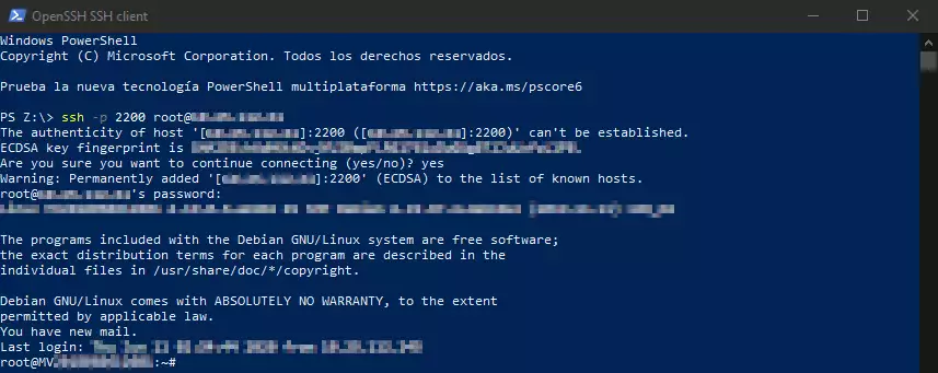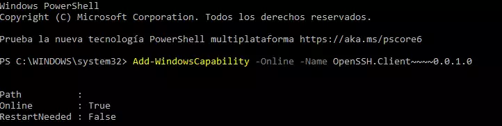 Una vez instalado, vamos a abrir una ventana nueva de PowerShell para realizar la conexión SSH: