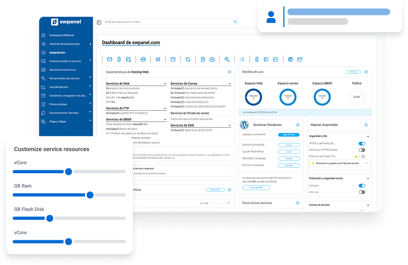 Personaliza SWPanel con tu marca. Ofrece nuestros servicios bajo tu identidad corporativa.